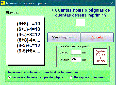 A very interesting option that all the games in this series have is the printing option. With it we can prepare and print worksheets with operations of various types and difficulty. These operations are also generated randomly and without limit, being always different. We can make the prints contain the solutions.