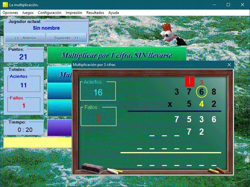 This game is very useful for educators and makes it much easier to practice and carry out multiplications, since it introduces the operations to the students in an entertaining way and the program makes the correction, without the need for the educator's intervention.