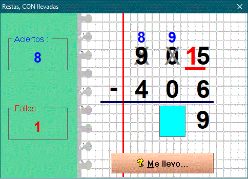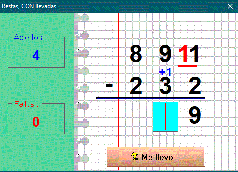 Performing the subtractions is identical to the way of doing them manually, having to enter the numbers from right to left. The program allows you to solve the subtractions to be carried in two ways: